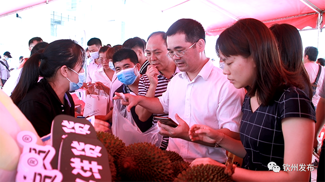在此次榴莲节线下活动现场,主办方安排了1元起拍猫山王、整点扫码秒杀超值猫山王,燕窝、进口红酒等特色产品展销等丰富多彩的活动,吸引了超过2万人次到场游览采购。启动仪式后还举办了榴莲线上疯抢活动,王雄昌走进网上直播间,与网红主持人一起为榴莲节直播带货,吸引了40万人次网友热情参与,30万颗猫山王榴莲仅用50分48秒就被网友抢购一空。