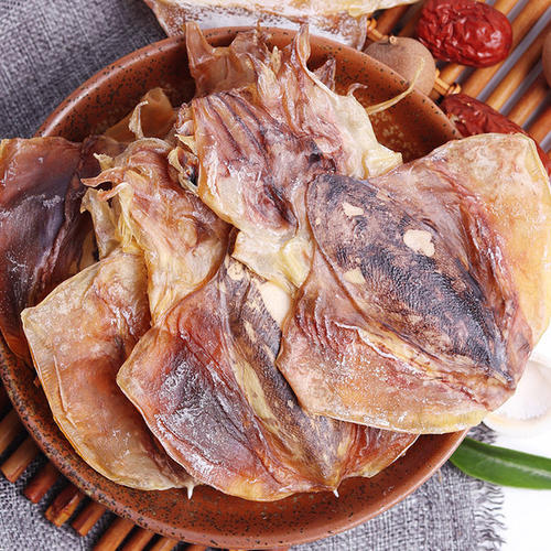 10月的北海,秋高气爽,阳光灿烂,又到了制作干海味的时节,在地角的海边,大量的新鲜墨鱼经过去除内脏、海水浸洗、定型沥水晾晒等工序,然后被放入烤房,经过一整夜的炭火烘干,洁净透明、肉质中泛出晶亮的杏黄色的墨鱼干就出炉了。一竹帘一竹帘的墨鱼干经过分拣装箱,一车车的发往全国各地,进入千家万户的餐桌。