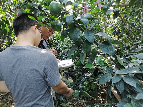 技术人员在柑桔田间采集