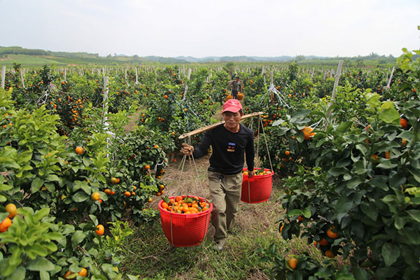 “2017年3月18日种植120亩金秋沙糖桔,今年是第二年获得丰收,金秋沙糖桔易于管理、保果。今年喜获丰收,亩产两千公斤,每亩产值预计2万元左右,目前已有北京、大连等地客商订购,9.6元/每公斤。”采访中,新甫村果农莫春山高兴地告诉记者,金秋沙糖桔品质好,连年丰产,上市时间较早,目前正是金秋沙糖桔采摘时节。
