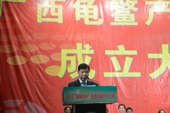 据了解,近年来,广西渔业部门充分发挥资源优势,大力发展龟鳖产业成效明显。据不完全统计,2012年,全区龟鳖养殖业主达7万多户,直接受益人员逾百万,养殖面积3000多万平方米,龟鳖产量2.5万多吨,龟鳖产值60多亿元。广西龟、鳖产量在全国分别排第六、五位,龟鳖产业已发展成为农民增收、居民致富的好途径。广西龟鳖产业协会的成立,将一步加大行业管理,保护产业资源,维护产业利益,加快推动广西龟鳖产业科学发展,促进城乡居民增收致富。
