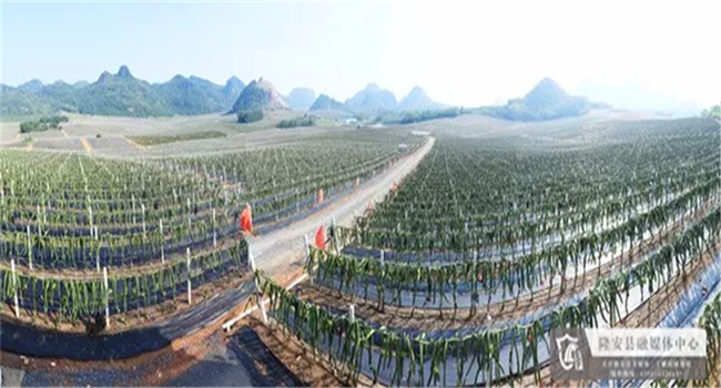 2017年以来,隆安县火龙果种植面积从3.95万亩增长至目前的7.2万亩,火龙果良种覆盖率达100%,普遍采用“金都一号”、“软枝大红”等高品质、耐储运、自花授粉新品种,智能水肥一体化、火龙果补光催花等新型农业技术运用纯熟,火龙果产业层次水平得到明显提升,成功创建隆安火龙果广西特色农产品优势区,享有“中国火龙果看广西,广西火龙果看南宁,南宁火龙果看隆安”之美誉。