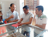 名优月饼“贵妃王”掌门人李先生(左一)