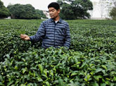 劳总查看茶叶生长情况